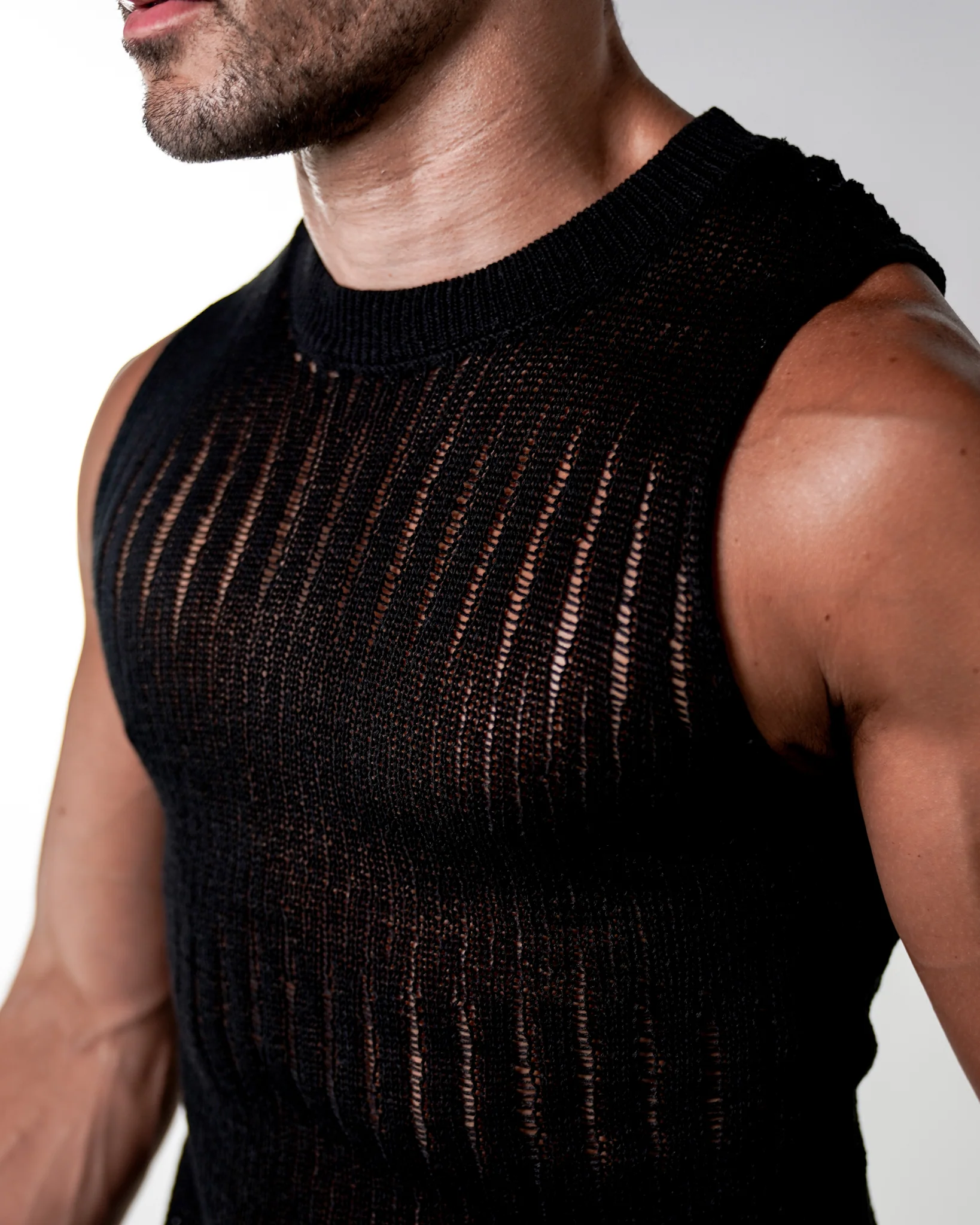 Our Marlow tank is crafted from breathable, lightweight knit with artful distressing that gives it a worn-in, lived-in aesthetic. Its sleeveless cut and relaxed silhouette evoke effortless strength, while the frayed details speak to a quiet rebellion.