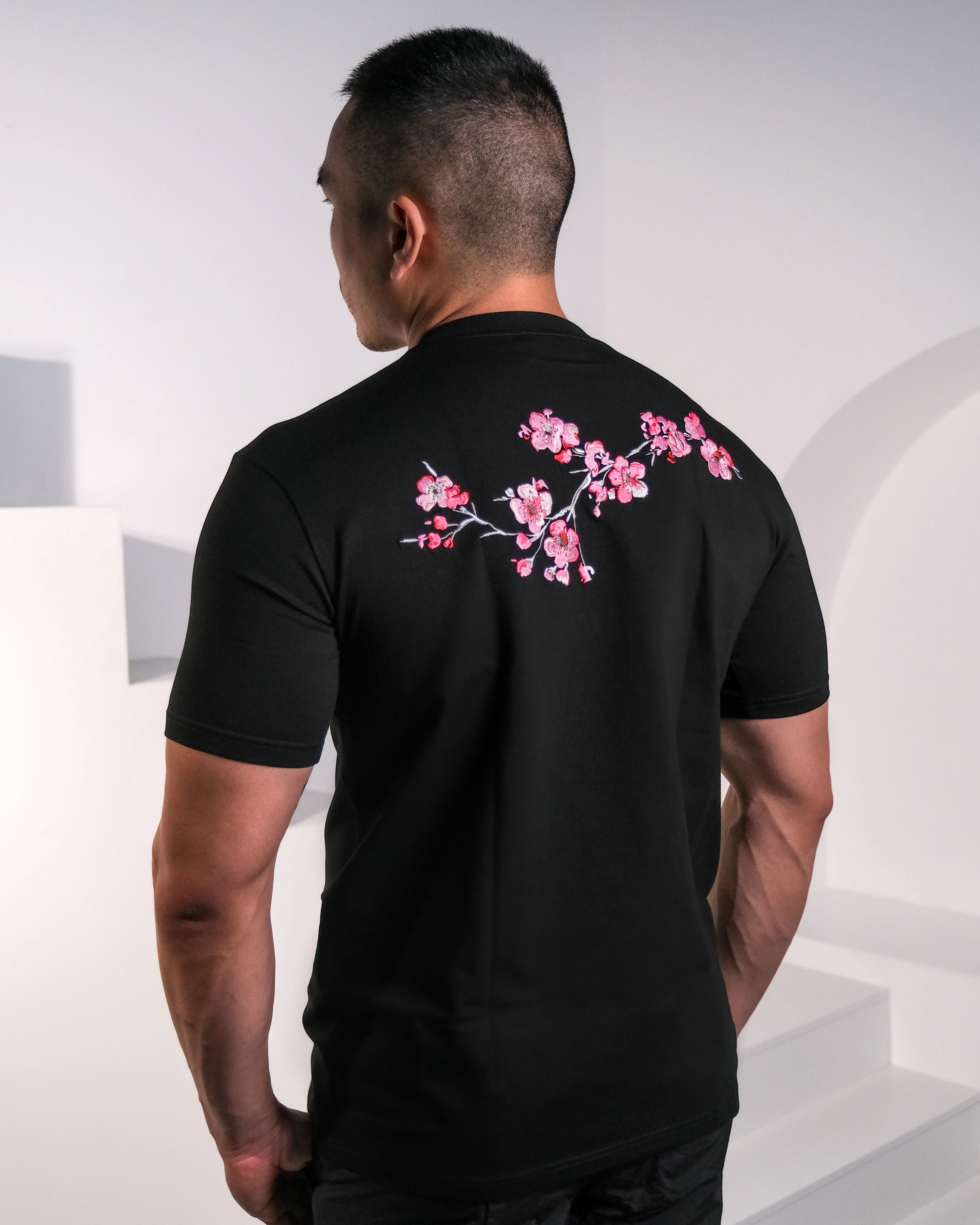 Inspired by the fleeting beauty of Japanese sakura, these T-shirts feature meticulously stitched cherry blossoms at the back, adding refined artistry to your everyday style.
