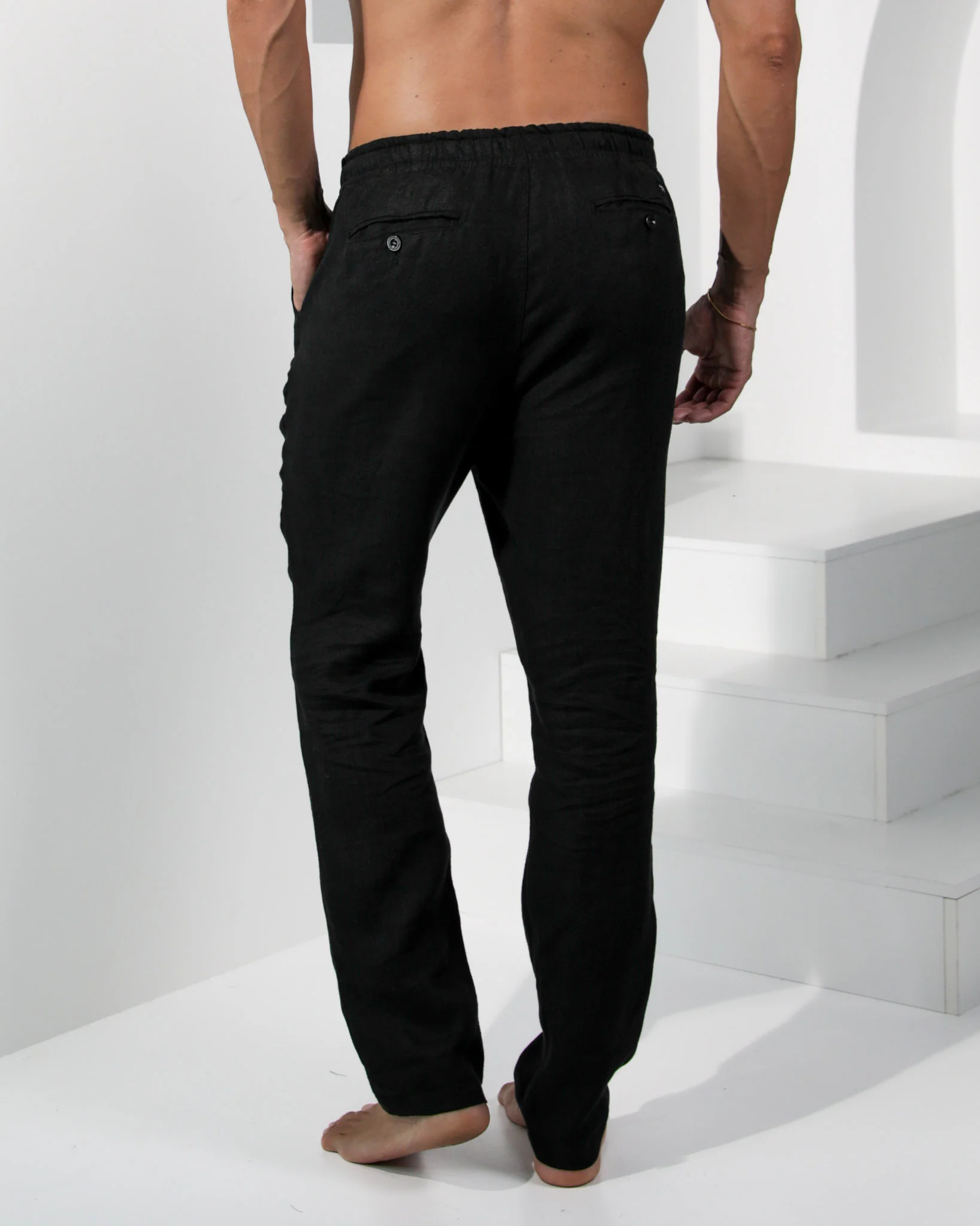 Leroy Tapered 100% Linen Pants - Black